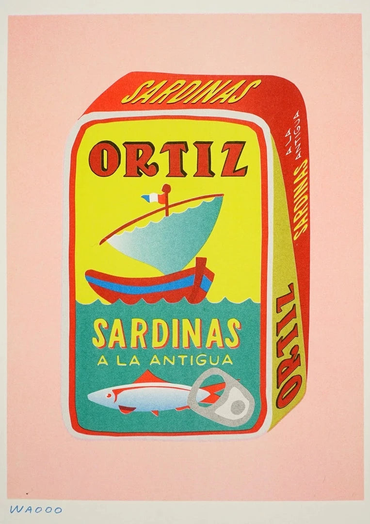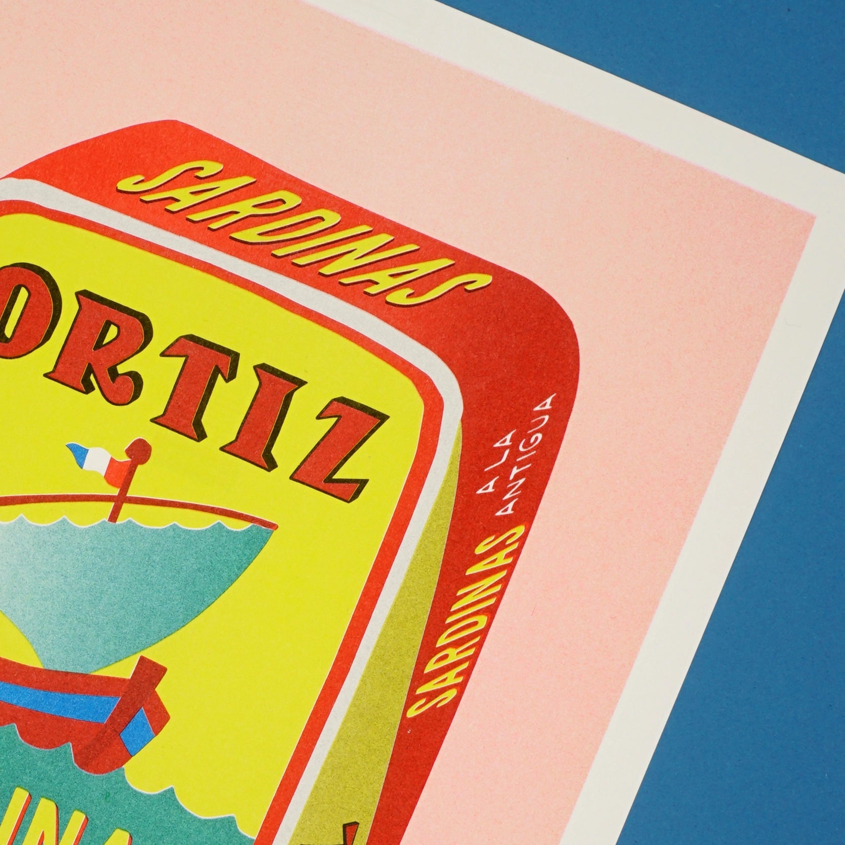 A 30X40 cm risograph print of a Can of Ortiz Sardinas by We Are Out Office.