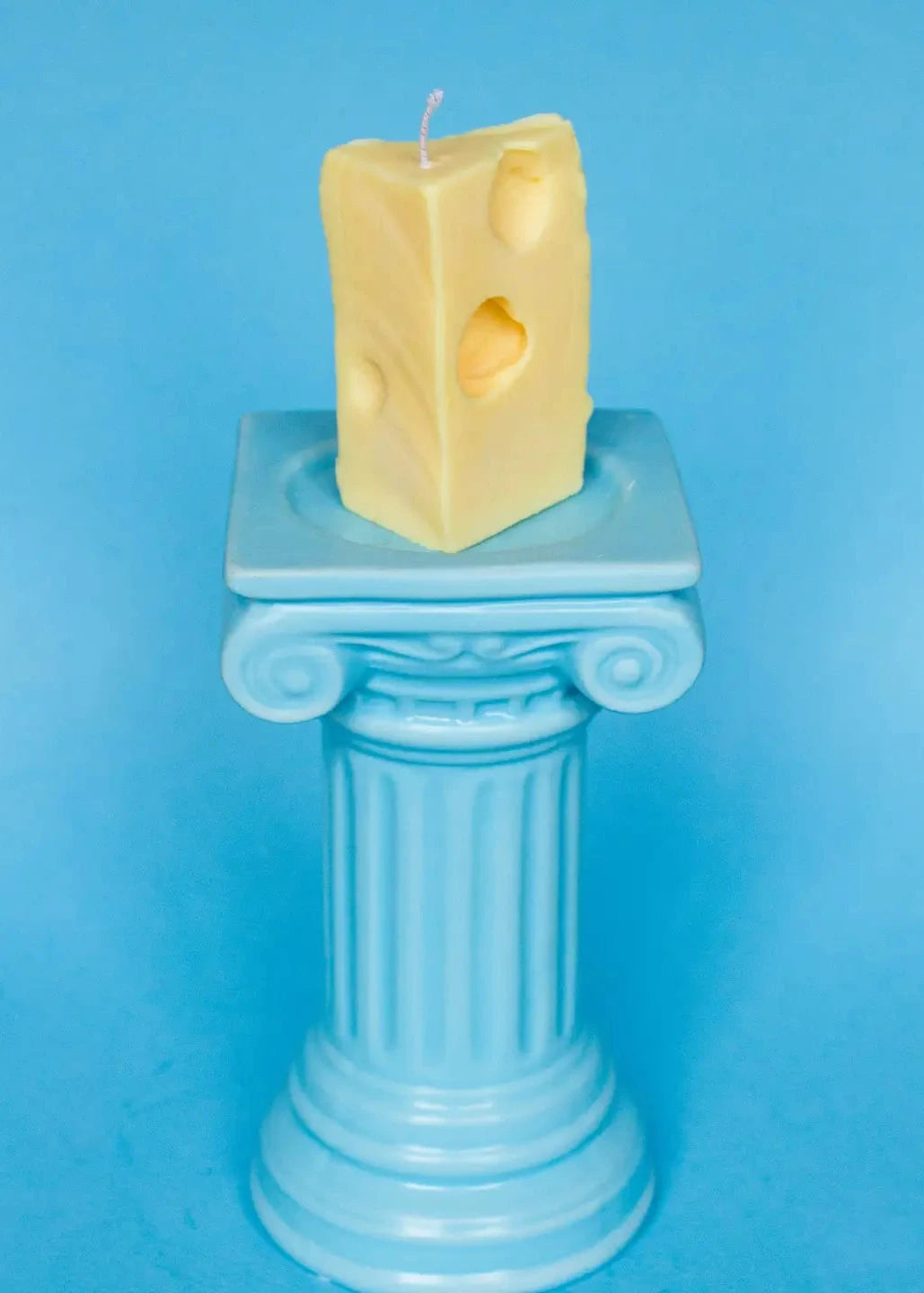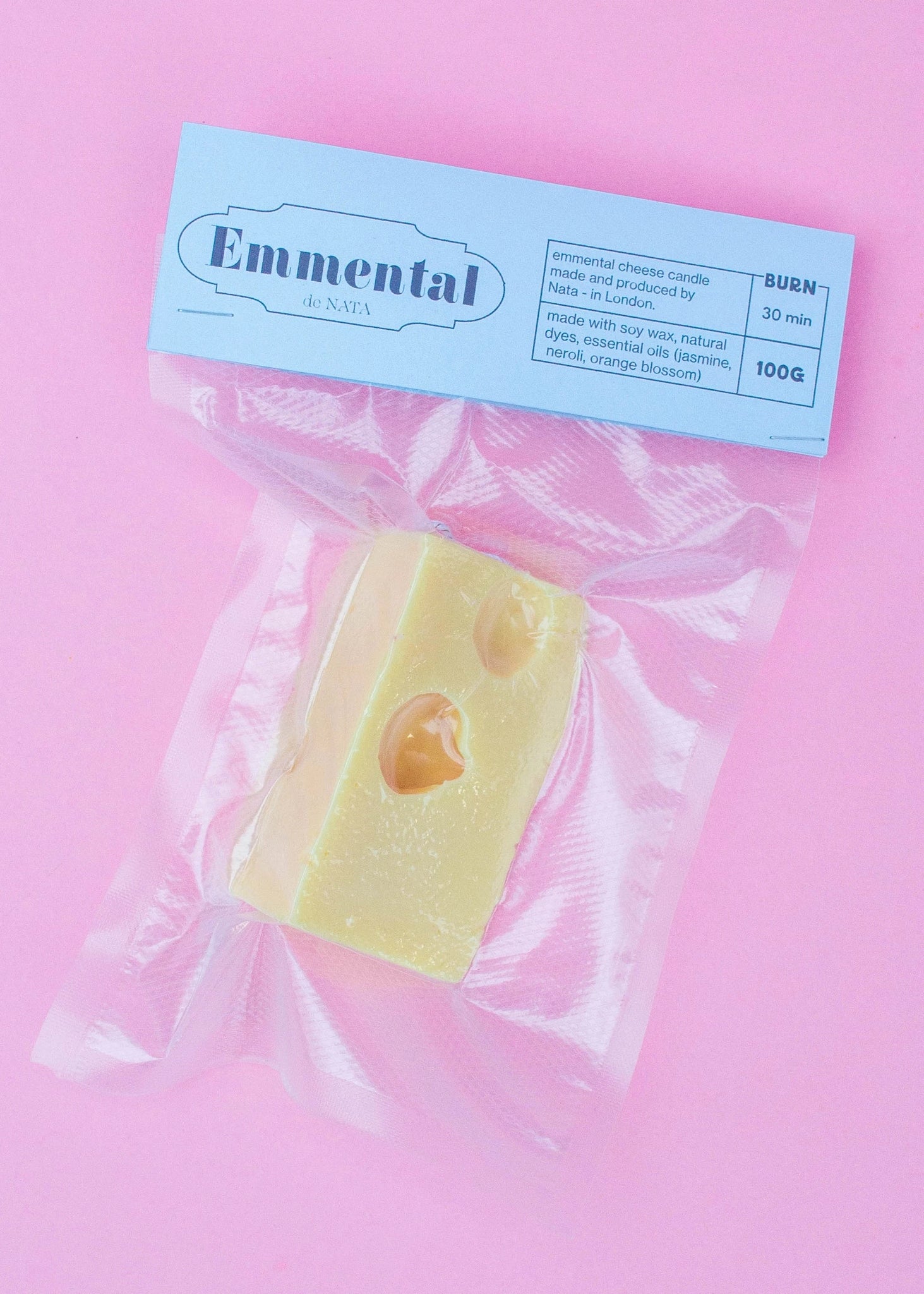 Smooth, firm, and dotted with iconic holes - our Emmental Candle celebrates the beloved Swiss cheese with a cheeky twist. Hand-poured from soy wax in small batches, this playful creation captures the essence of the real thing, minus the dairy. Wrapped in sustainable, BPA-free packaging, it's the perfect gift for cheese enthusiasts and foodies who love a bit of humour. Scented with jasmine, neroli, and orange blossom, it burns for approximately 30 minutes. A delightfully quirky addition to any home or an unforgettable Valentine's Day surprise.