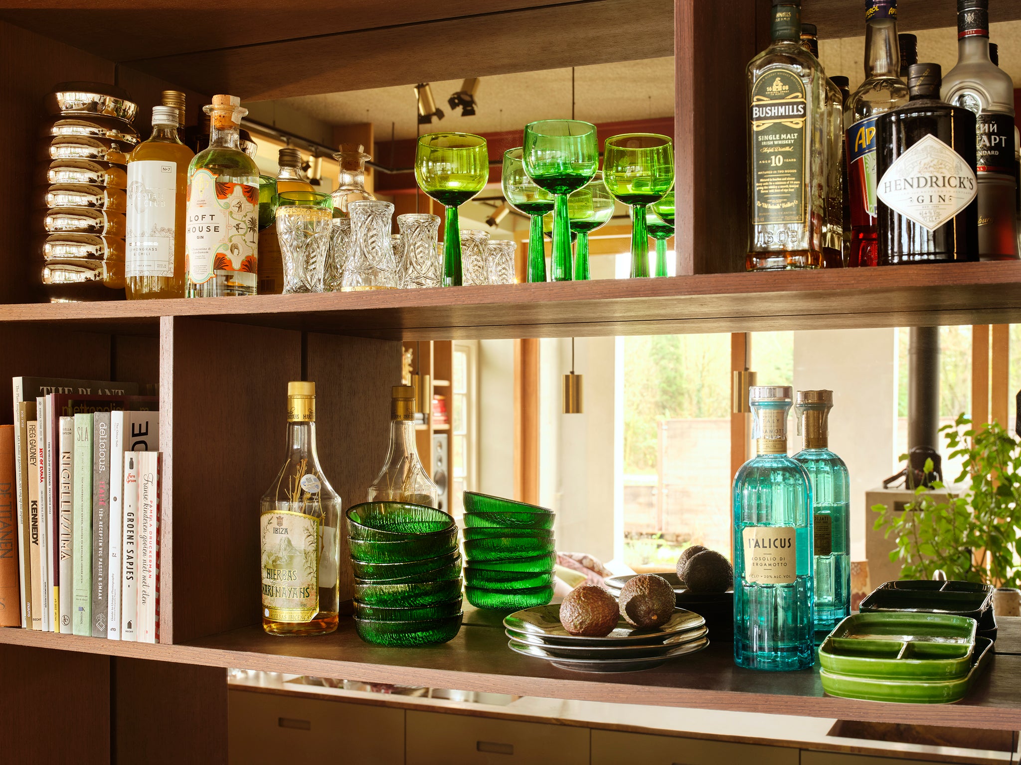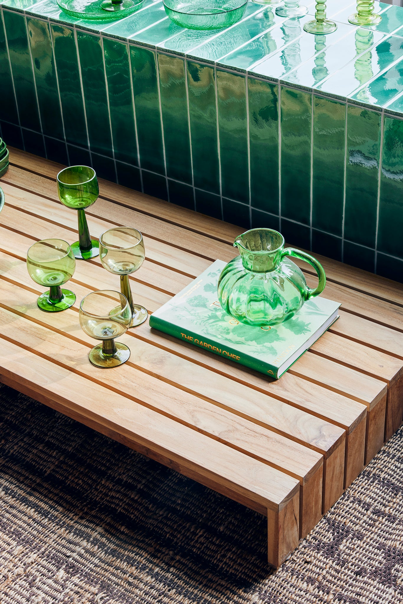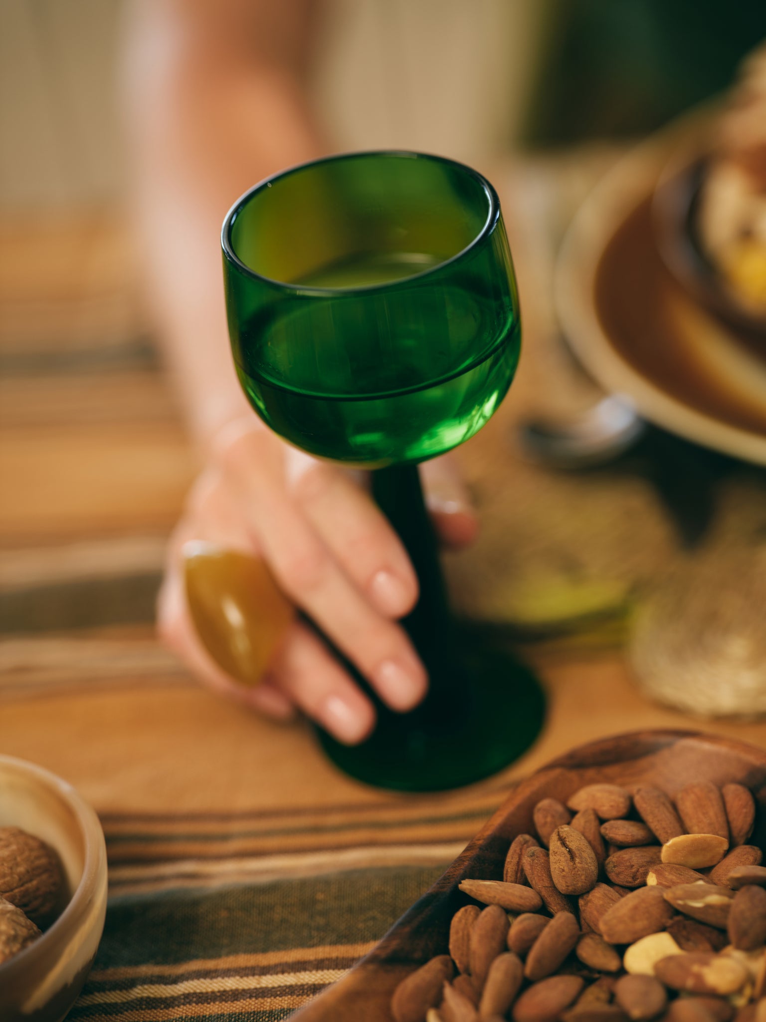 Shades of jewel toned green blend with hand finished smooth shapes, adding a fresh Mediterranean feeling to any setting. A careful mixture of transparent glassware, ceramic, stoneware with reactive glaze and crackle glaze, each piece in this perfectly balanced series combines the finest quality with harmonious designs.