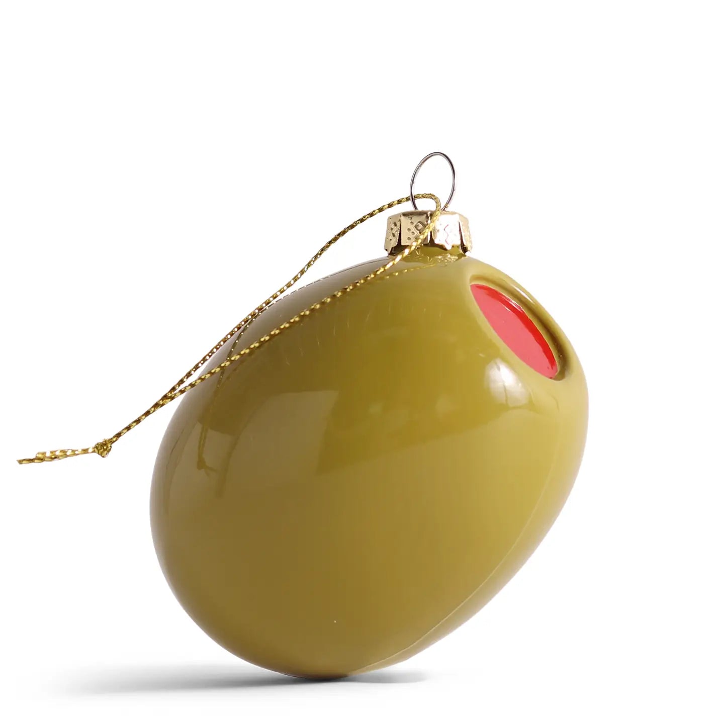 Bold, briny, and impossible to miss. This oversized glass olive is mouthblown and hand-painted by skilled artisans, right down to its signature pimento. A statement piece from our cult food and drink collection — for martini lovers, snack enthusiasts, and anyone with taste.