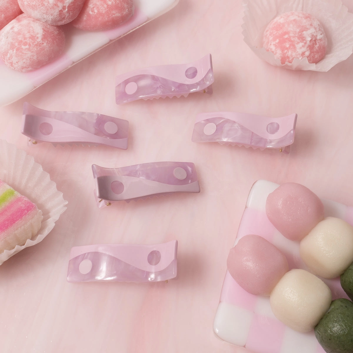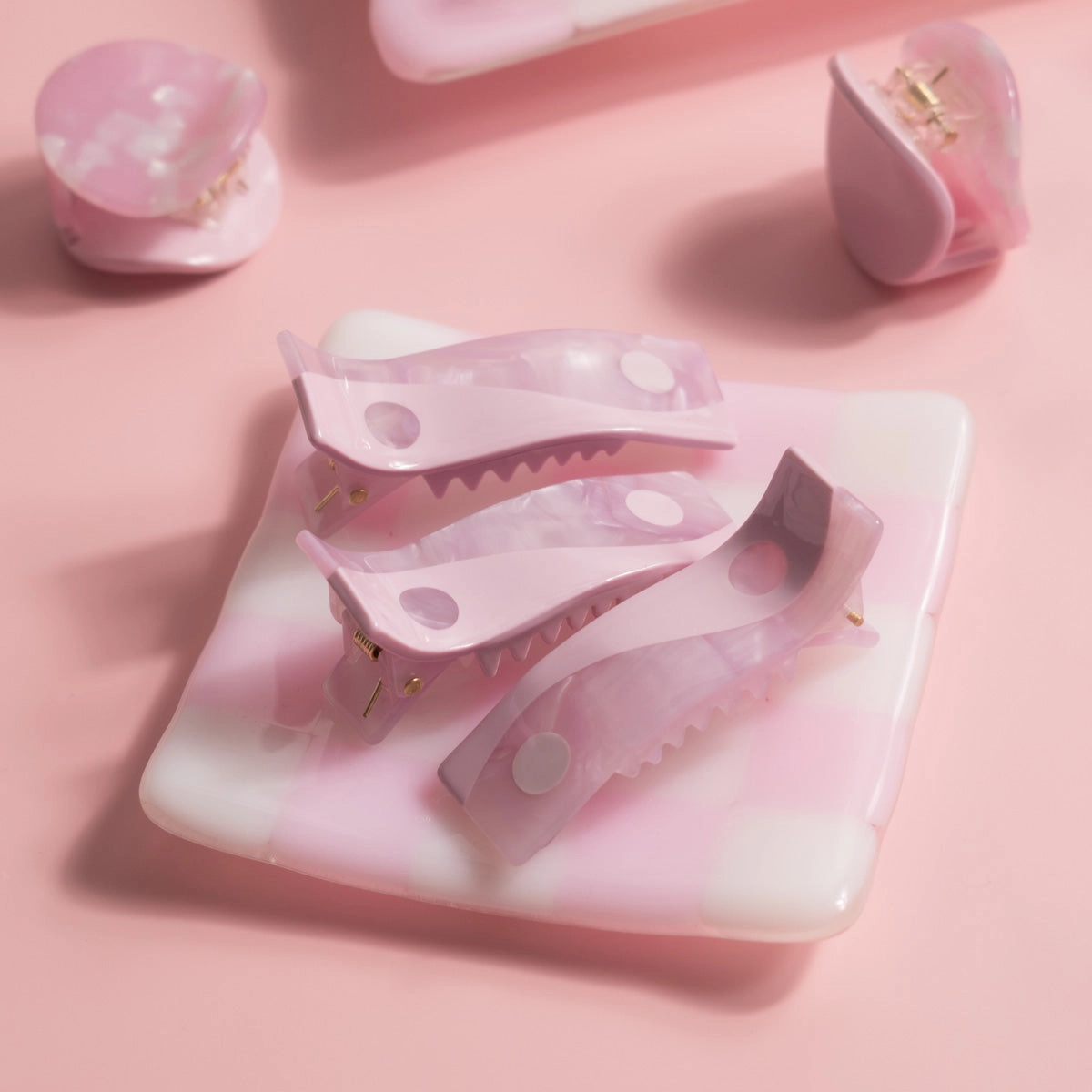 A cute alligator clip that is acetate on both sides in a monochromatic pink colour scheme.