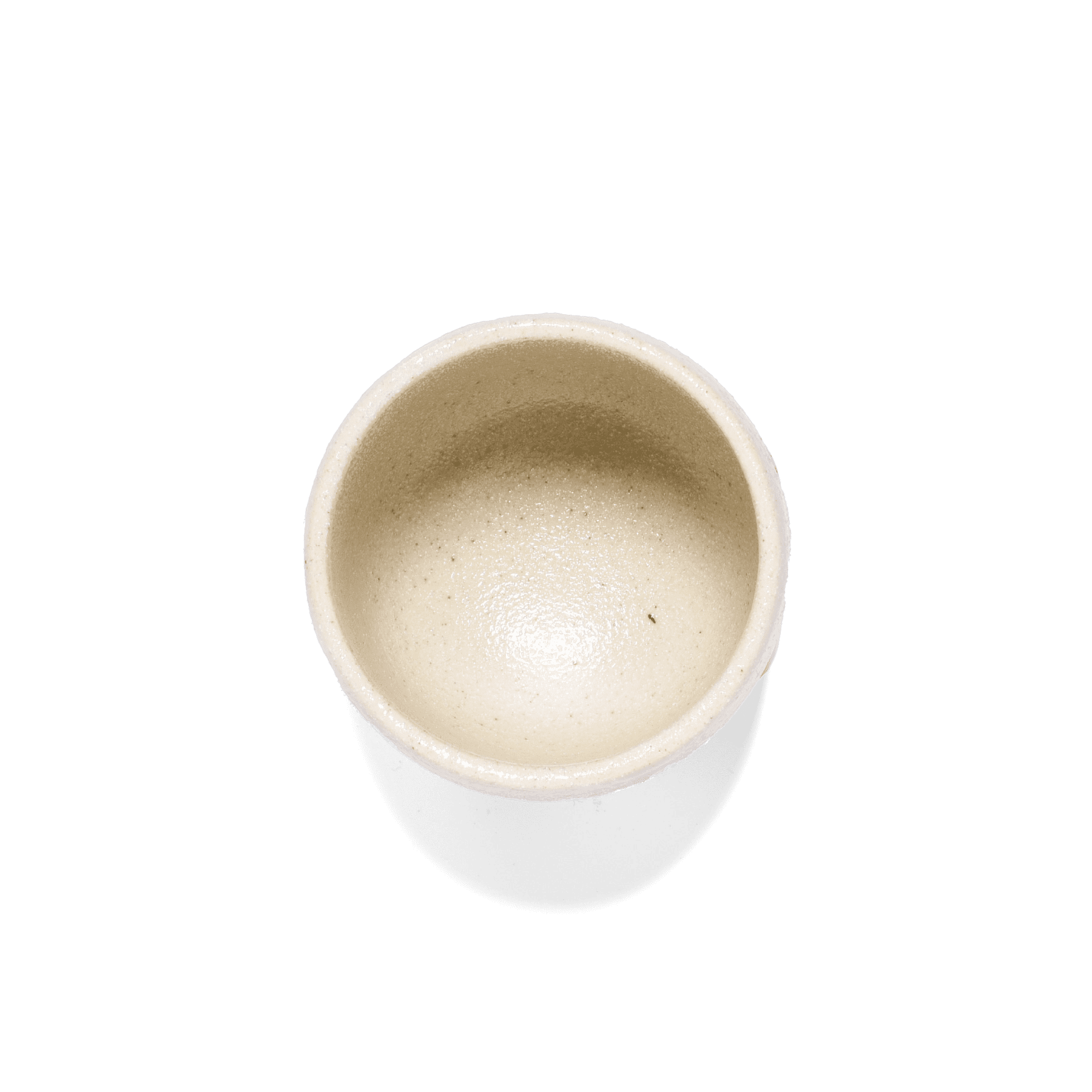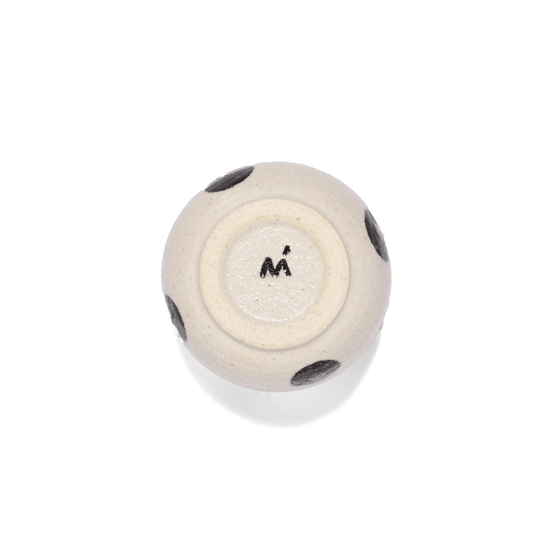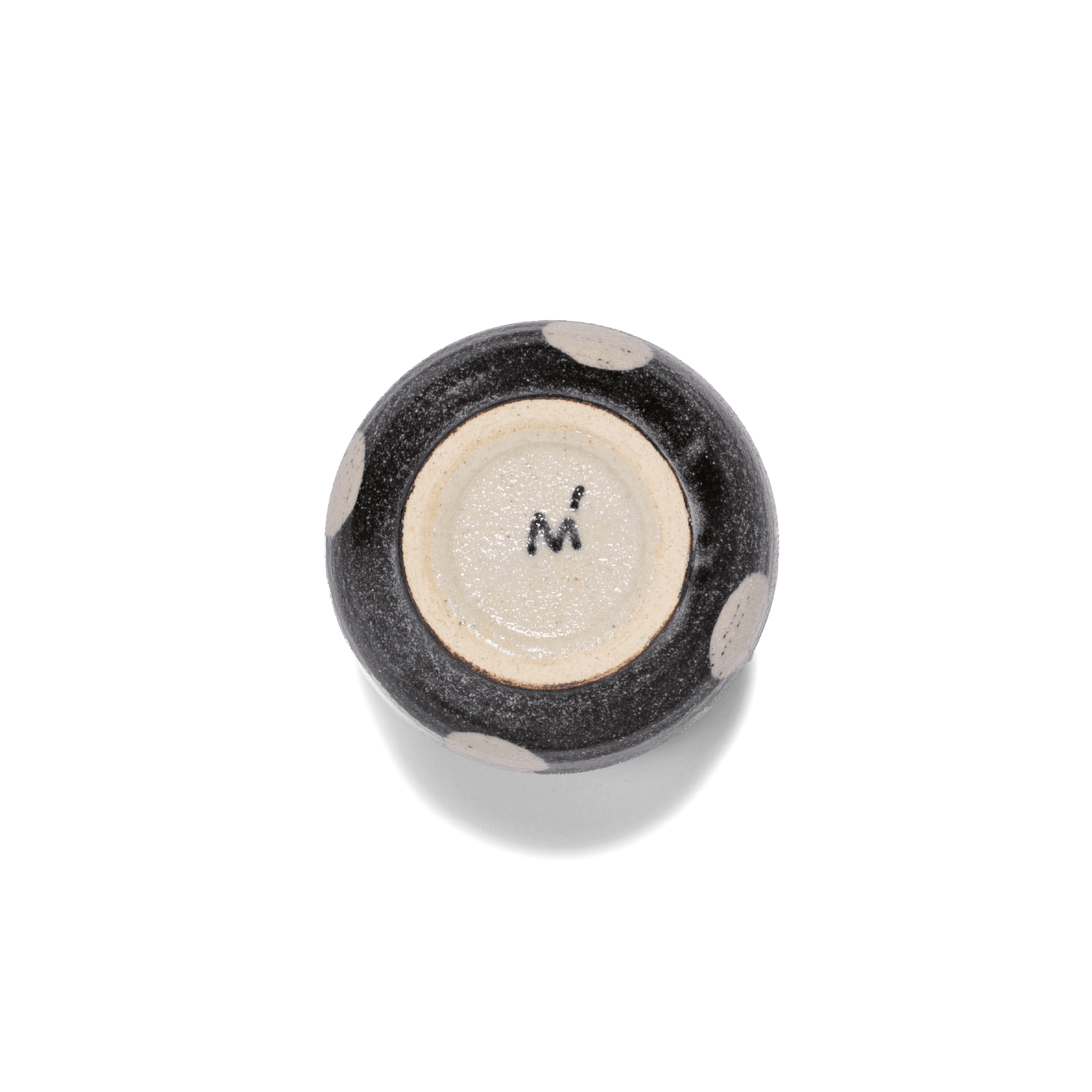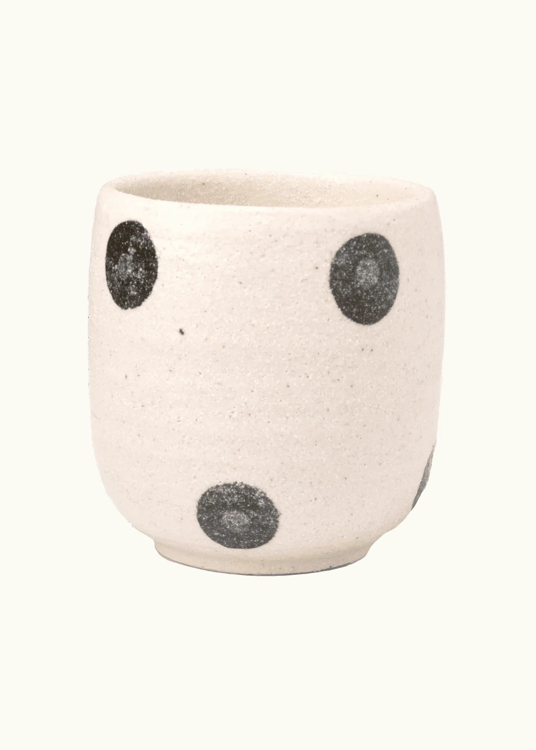 The Mizutama cup in rough pottery features the rustic and irregular polka dots which are hand-painted by Japanese artisans. The glaze containing a lot of granular particles is used for this bowl, giving a rough texture.