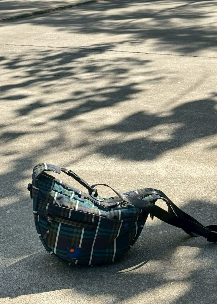 Half Moon Bag in Bag in tartan deadstock fabric by Jap fac