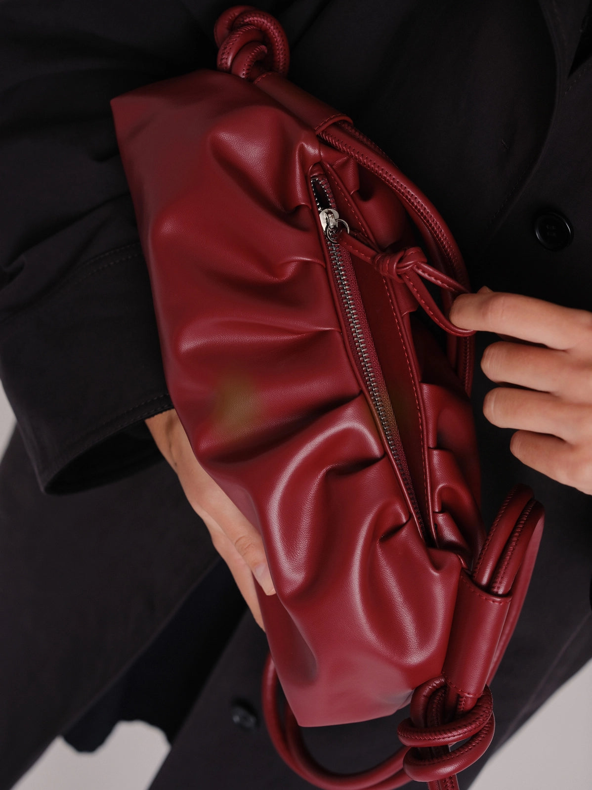 Featuring a unique double-handle system, the Dumpling Bag can be carried in multiple ways, with adjustable knots adding a personalized touch.
