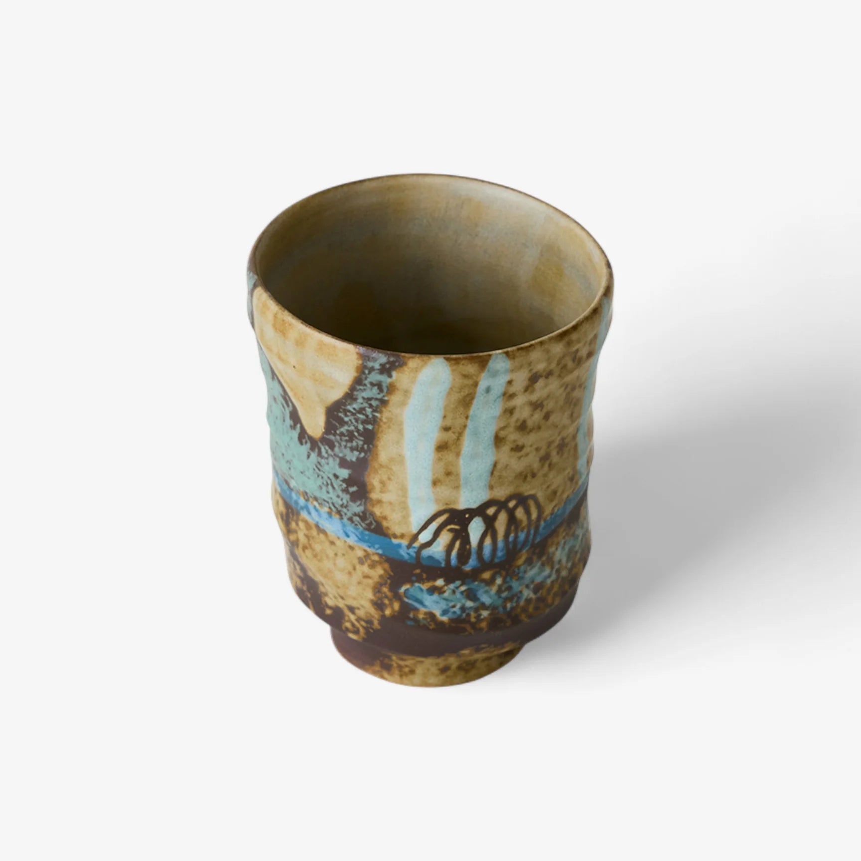 These ceramic mugs celebrate imperfection with hand-painted finishes, raw edges and subtle irregularities that make each piece feel one of a kind. Inspired by the creative chaos of the artist’s studio, they come in two shapes and expressive finishes.