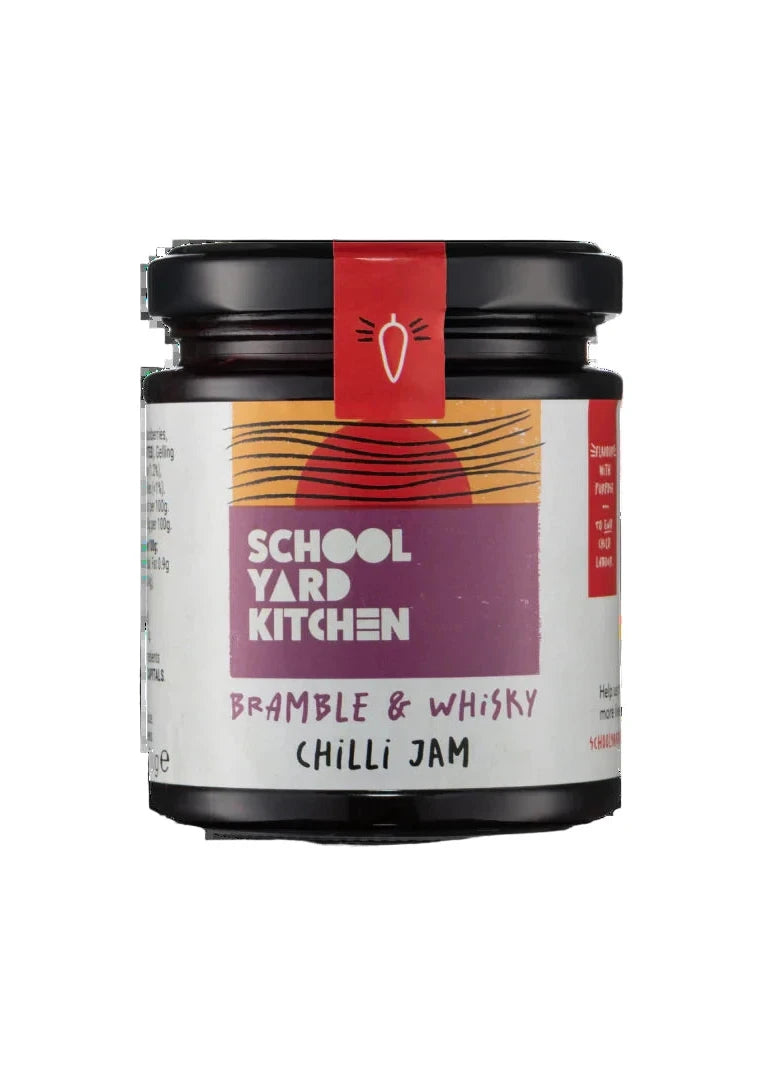 Ingredients: Sugar, Blackberries, Lemon Juice (SULPHITES), Gelling Agent (Pectin), Whisky (1.2%), Ginger, Ghanaian Chillies (< 1%). Prepared with 40g fruit per 100g, Total Sugar Content 63g per 100g
