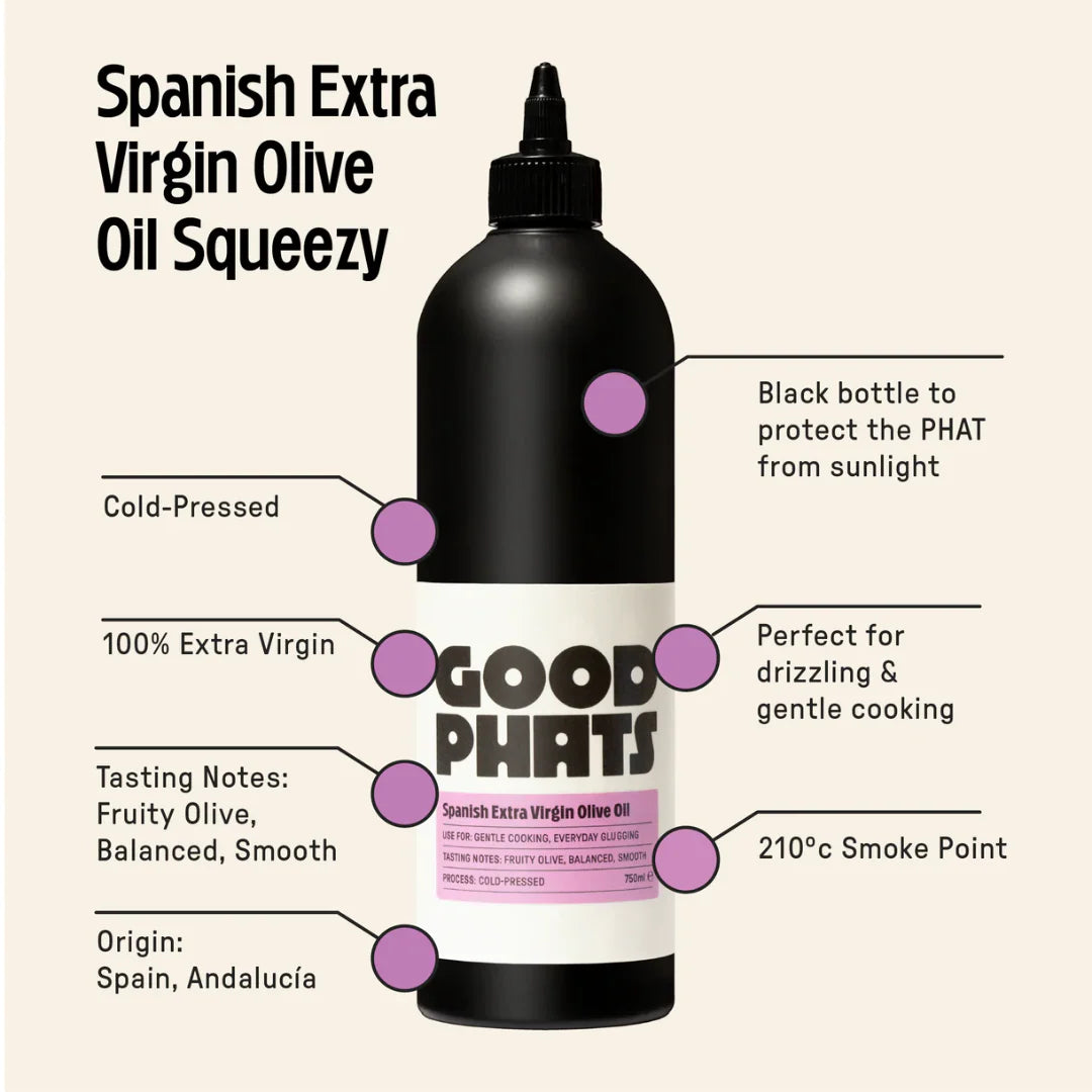 Good Phats Spanish Extra Virgin Olive Oil is now available in a 750ml squeezy bottle.