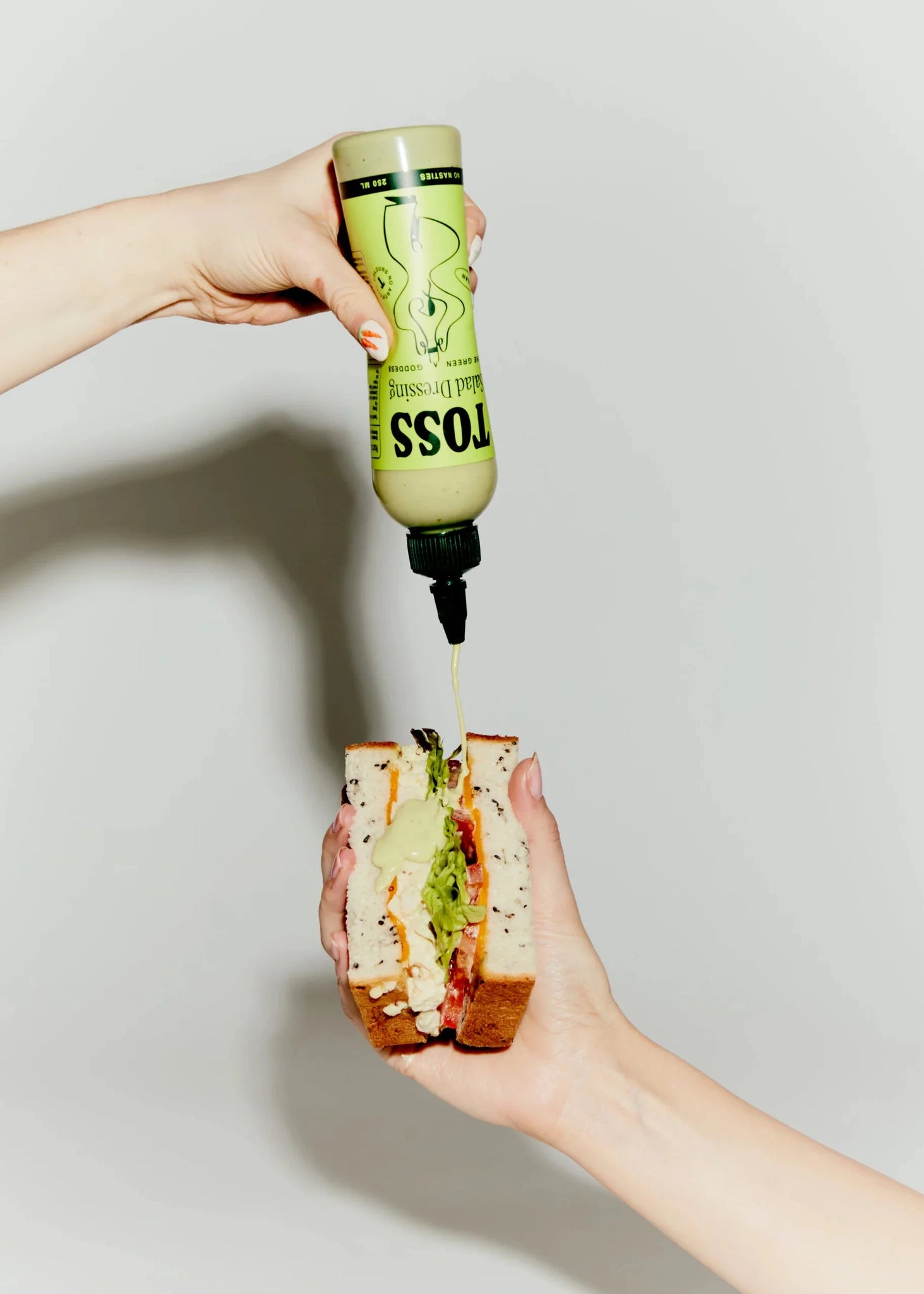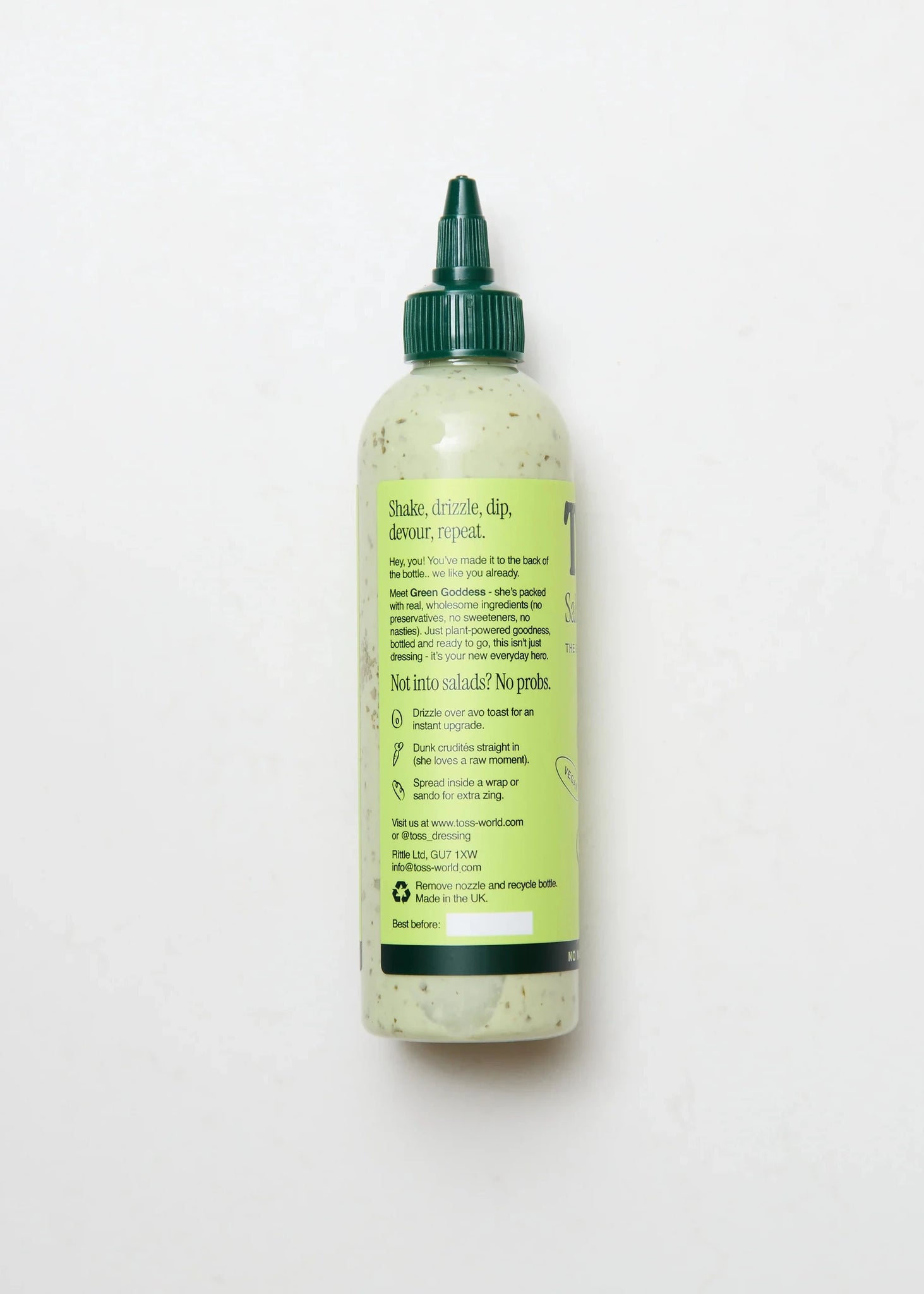 A rich bottle of pure salad joy. This Green Goddess Dressing is cool, creamy, and unapologetically fresh. Packed with 100% natural ingredients and zero refined sugars, gums, or preservatives, it's real food doing what real food does best. Drizzle it over greens, use it as a dip for crudités, marinate your proteins, or wrap it into sandwiches. Because once you've tasted something this good, salad bowls feel like a waste of its talents.