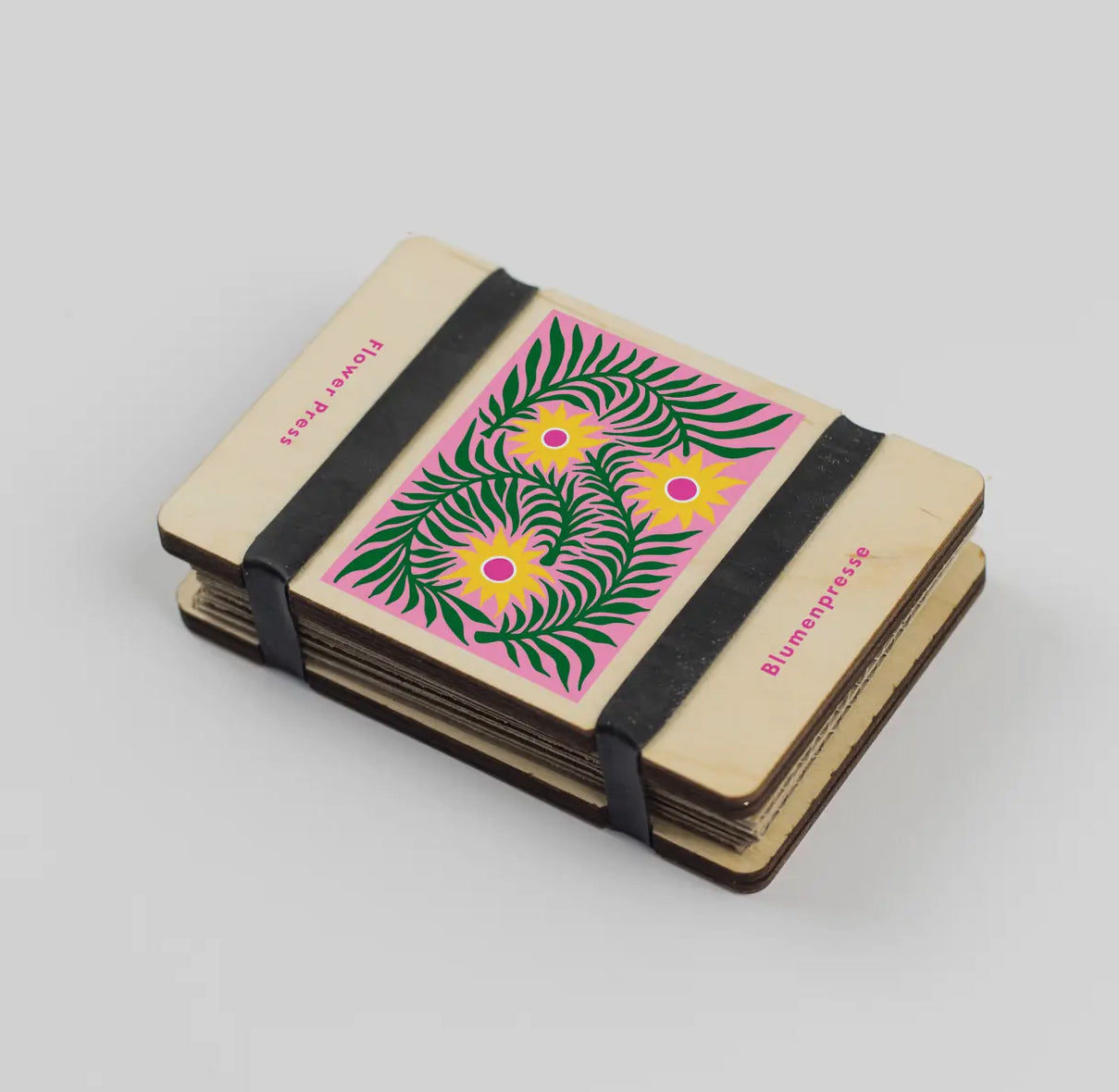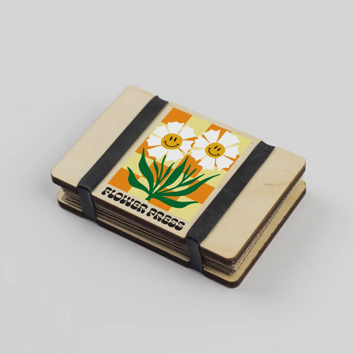 The perfect partner for collecting flora out on your wanders. Safely press your flora in the pocket press so your plant materials stay intact. Fasten using the elastic bands and pop the press in your pocket.